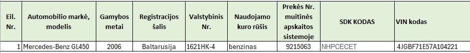 apmokėjimas už aukcione (nurodyti aukciono Nr.) įgytą MB GL450,