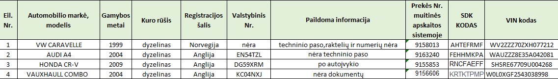 | Pavadinimas: | 2023 m. balandžio 26-27 d. Muitinės departamentas skelbia ir vykdo Ne Sąjungos prekės – 4 įvairių markių automobilių pardavimą |
