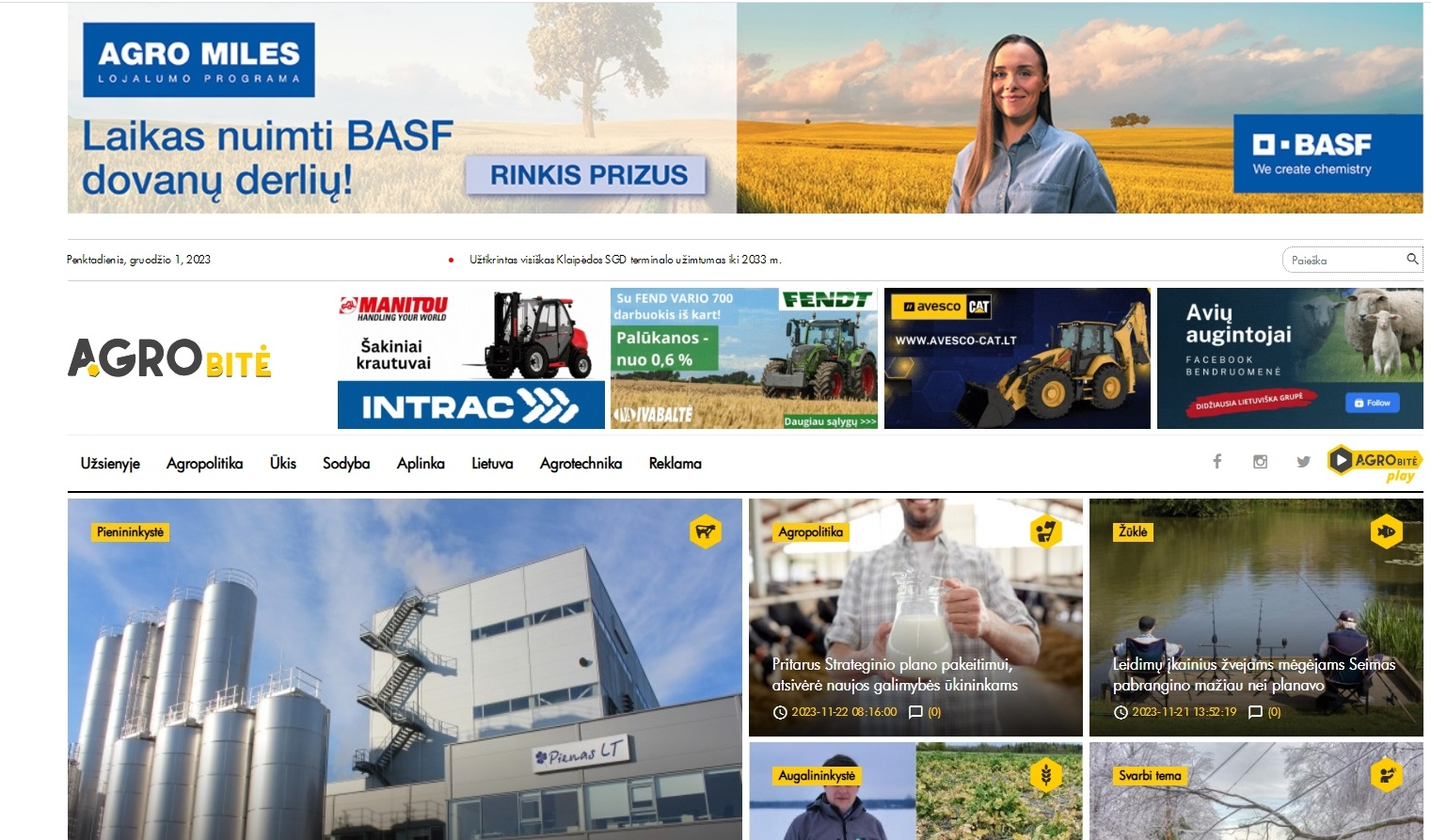 Žemės ūkio naujienų portalo "Agrobitė" auditorija kiekvieną mėnesį pasiekia apie