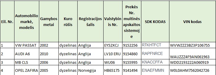 2023 m. rugpjūčio 30-31 d. Muitinės departamentas skelbia ir vykdo Ne Sąjungos prekės – 4 vnt. įvairių markių automobilių pardavimą