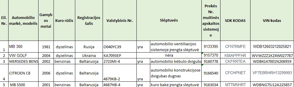 transporto priemonėse pašalinęs specialiai įrengtas slėptuves, muitinei