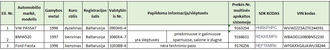 | Pavadinimas: | 2023 m. spalio 4-5 d. Muitinės departamentas skelbia ir vykdo Ne Sąjungos prekės – 3 vnt. įvairių markių automobilių pardavimą |